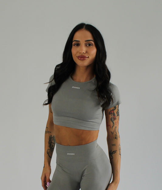 Zhanda Long Sleeve Cropped Tee - Blue Grey