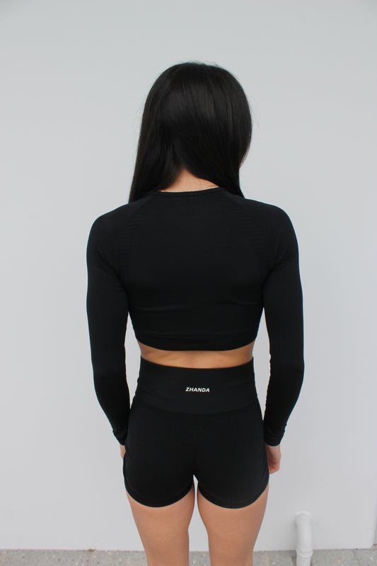 Zhanda Long Sleeve Cropped Tee - Mocha Brown